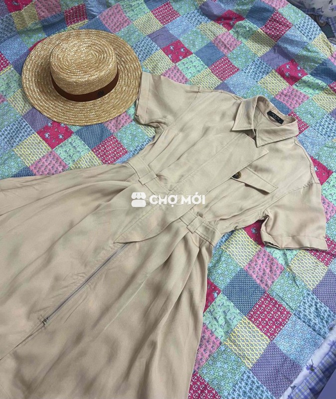 Váy Eva de Eva sz M- dáng váy sơ mi nữ màu be, chất liệu vải mềm mại, thoáng mát. - Thiết kế tay ngắn, kiểu dáng thanh lịch. - Phù hợp đi làm