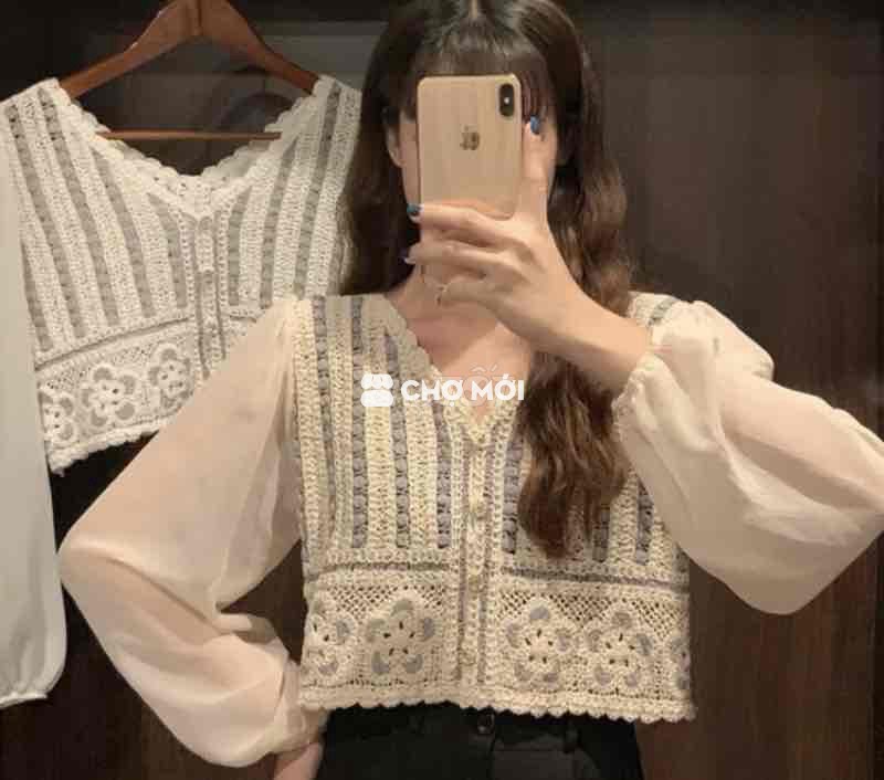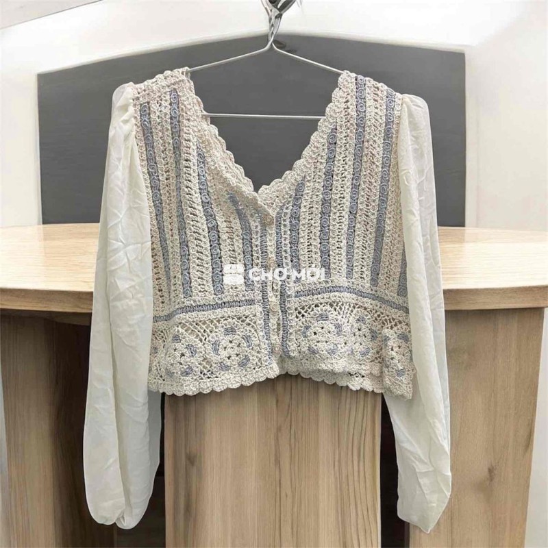 (2hand) Áo Len Đan Móc Phối Voan Dài Tay