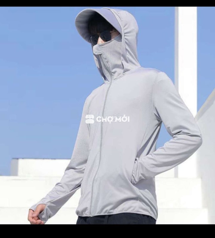 Áo chống nắng HIDOLI màu xám, chất liệu thun lạnh thoáng mát, phù hợp cho cả nam và nữ.