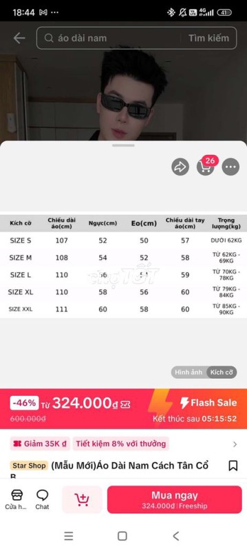 -Dạ e cần pass lại áo dài nam cách tân, màu xanh navy, chất liệu cotton thoáng mát, size M.