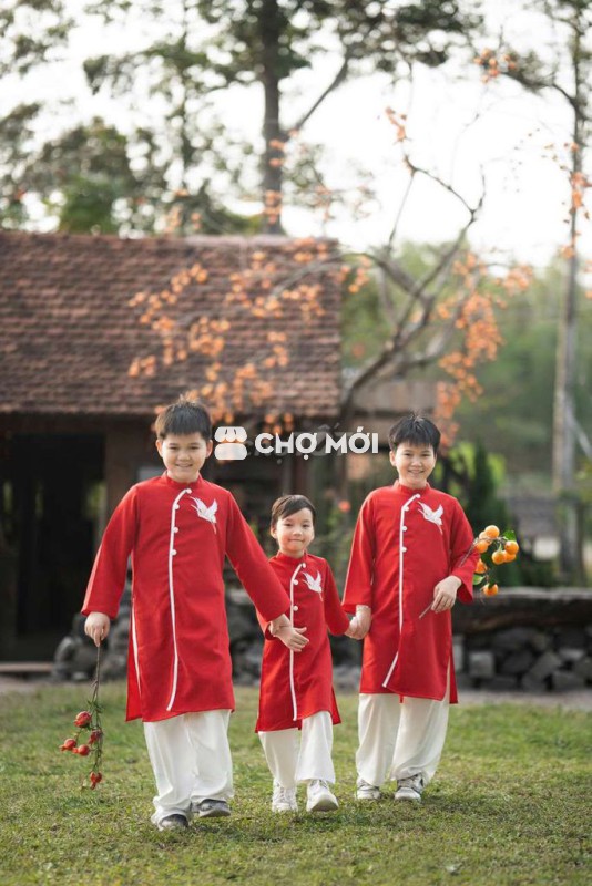 Áo dài gia đình tông đỏ size từ 8kg đến 54kg