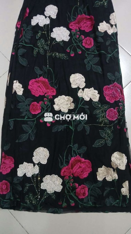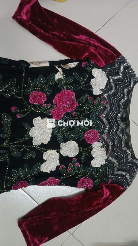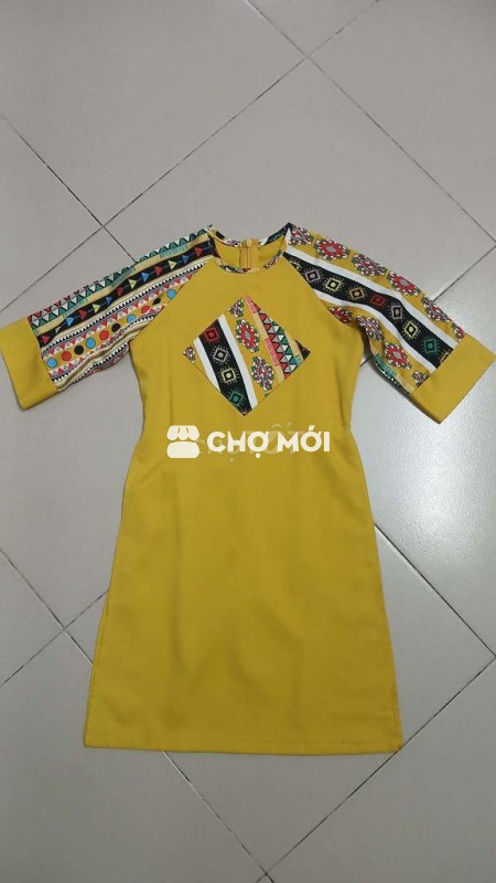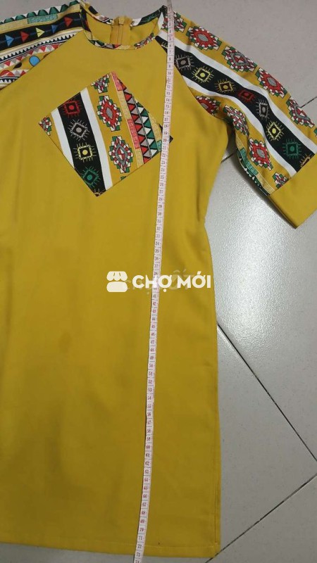 Áo dài thiết kế kết cườm hoa thêu rừ vai đến hết tà dài 1m68 (ko quần) mới 100% giá 500k VÀ kèm 1 áo dài bé gái màu vàng chất tơ nhẹ họa tiết thổ cẩm từ vai đến tà dài 70cm (ko quần) giá 50k