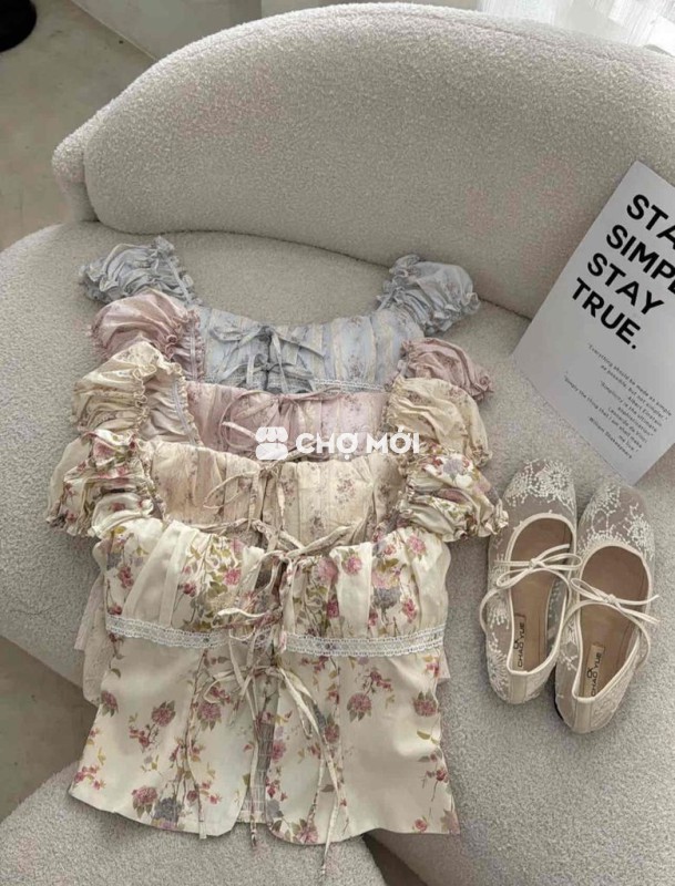 Áo Hoa Nhí Trễ Vai Thắt Nơ Xinh Yêu