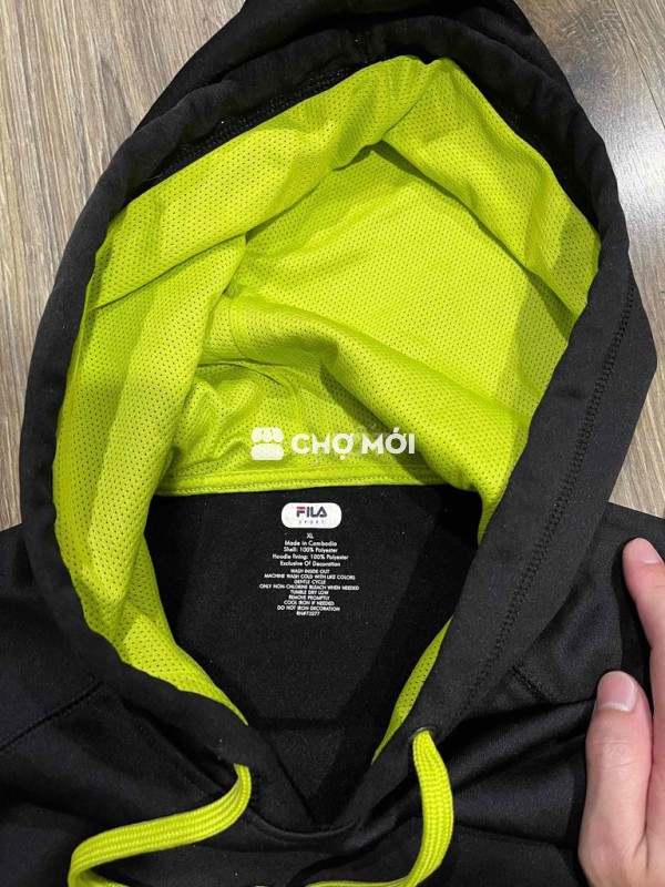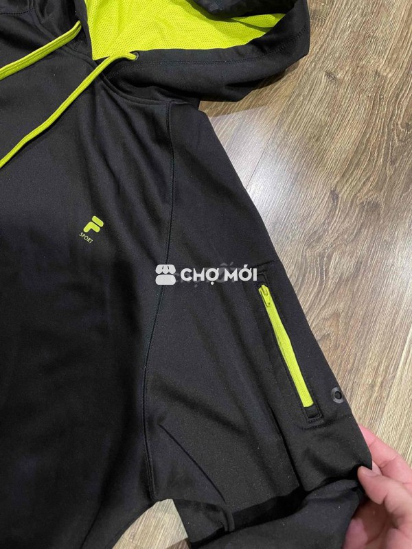 Áo trc mua của Fi.la size XL cho ai cỡ 65-85kg cao 1m75-1m9 mặc vừa . Mặc khá ấm. Dòng Sport của Fila . Mũ có lót lưới .phối màu xanh lá.