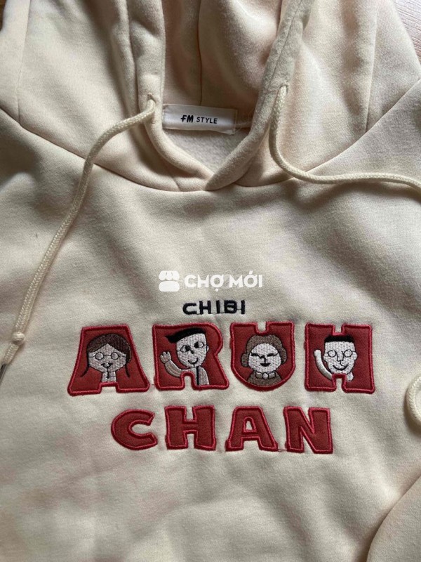 Áo hoodie FM Style màu kem, chất liệu nỉ mềm mại, giữ ấm tốt.