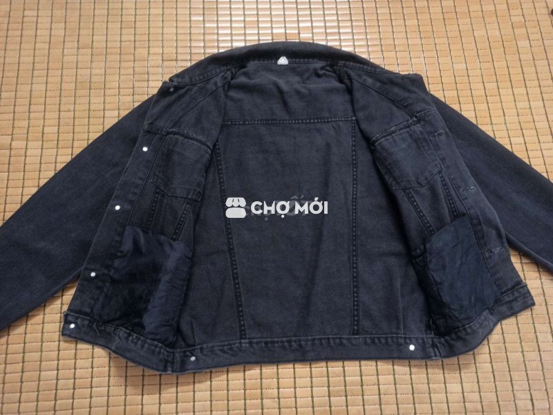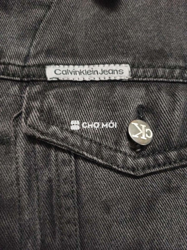 Em bán chiếc áo jeans, dáng 7 mảnh, chính hãng CK Size: L Vai 50- ngực 57- dài 68 Màu đen bạc Có túi sườn Khuy dập tên hãng Giá 190k