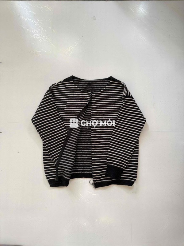 Áo khoác len cardigan nữ kẻ sọc đen trắng, chất liệu len mềm mại. - Thiết kế trẻ trung, dễ phối đồ. - Giữ ấm tốt, phù hợp nhiều dịp.
