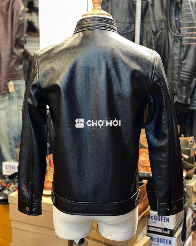 Áo khoác da bò Ý đơn giản cổ trụ trẻ trung