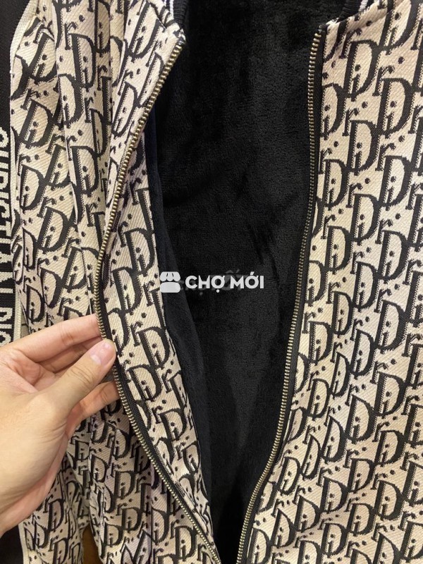Áo khoác Dior lót lông, màu be đen, size XL.