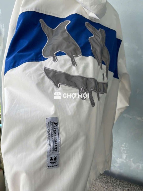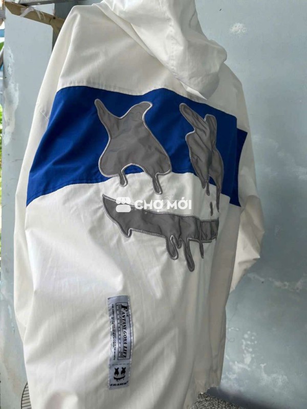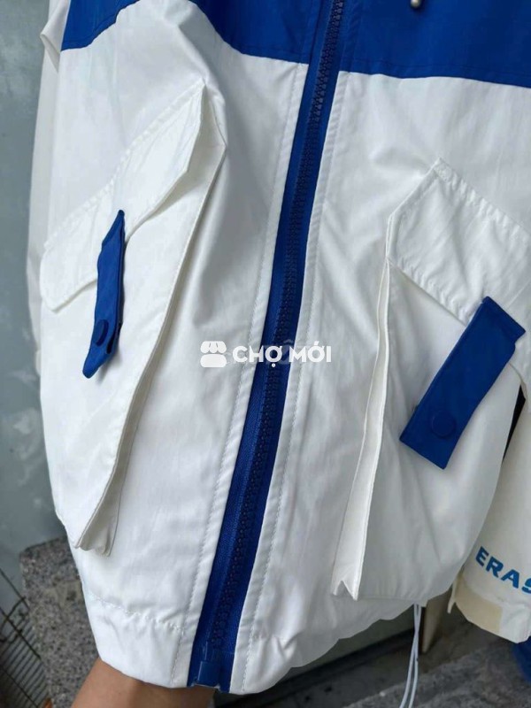 Áo khoác ERASER vải dù, màu trắng xanh dương, phong cách thể thao năng động.