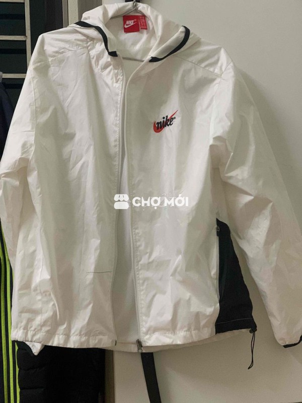 Áo khoác gió Nike sportwear màu trắng đen, chất liệu polyester, phù hợp cho cả nam và nữ.