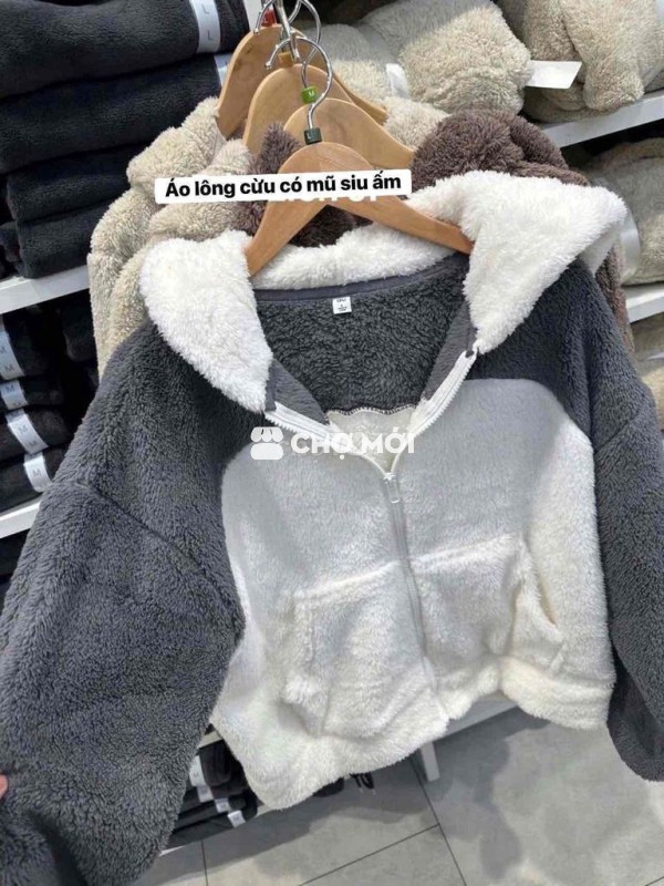 áo lông cừu có mũ GU siêu ấm size 160 người dưới 57kg mặc vô tư