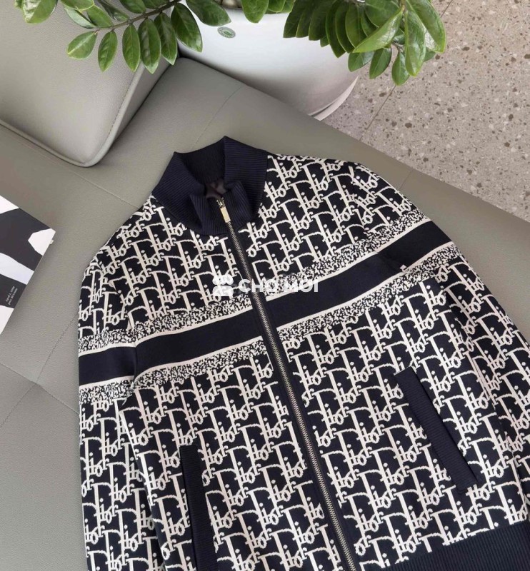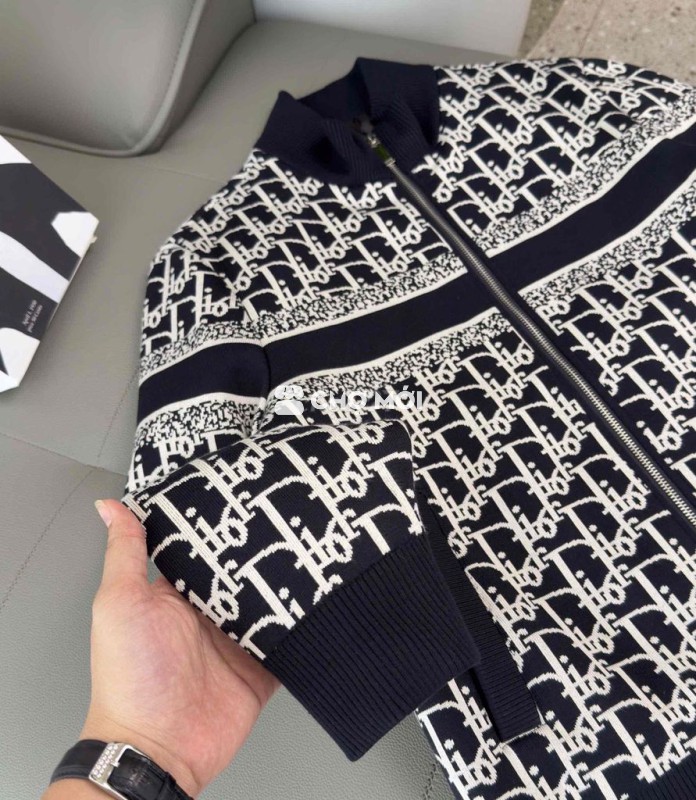 Áo khoác len Dior màu đen trắng, chất liệu len mềm mại, giữ ấm tốt.