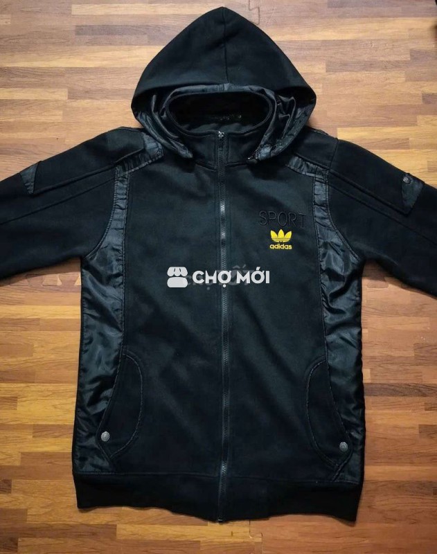 Áo khoác Nỉ có mũ thoái rời màu đen cho nam, kiểu dáng thể thao, năng động.