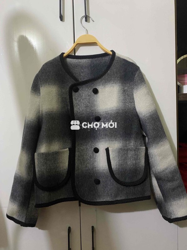 Áo khoác nữ chất liệu len, màu xám kẻ caro. - Thiết kế trẻ trung, dễ phối đồ. - Chất liệu len giữ ấm tốt. - Phù hợp cho nhiều dịp.
