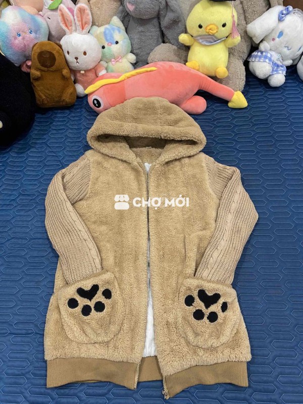 Áo khoác nữ lông cừu màu nâu, kiểu dáng hoạt hình dễ thương. - Chất liệu lông cừu mềm mại, giữ ấm tốt. - Thiết kế trẻ trung, phù hợp nhiều dịp. - Dễ phối đồ, tạo phong cách riêng.