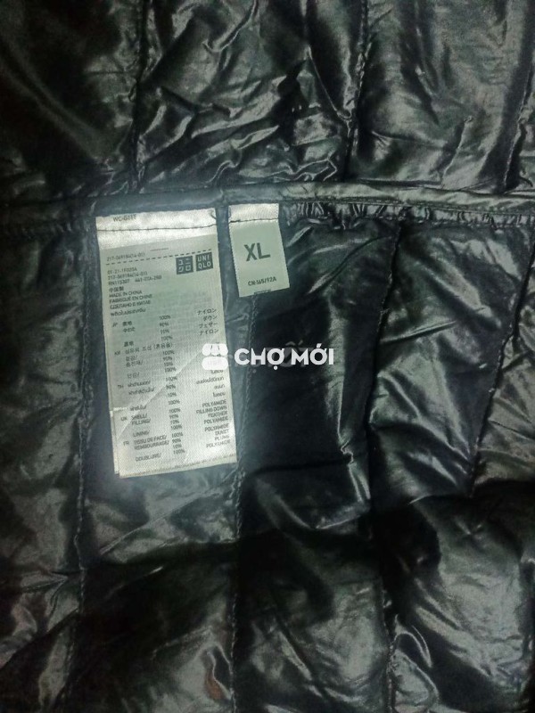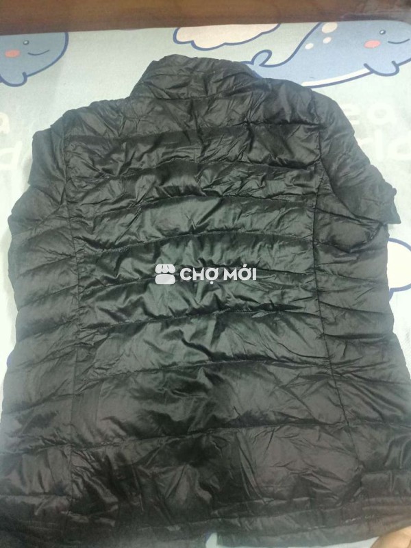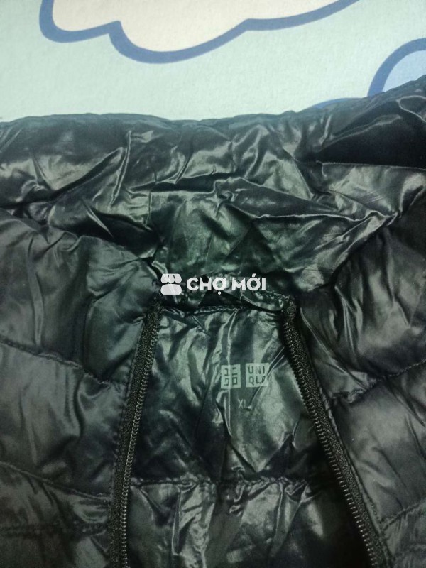 Áo khoác phao Uniqlo màu đen, size XL, chất liệu nylon.
