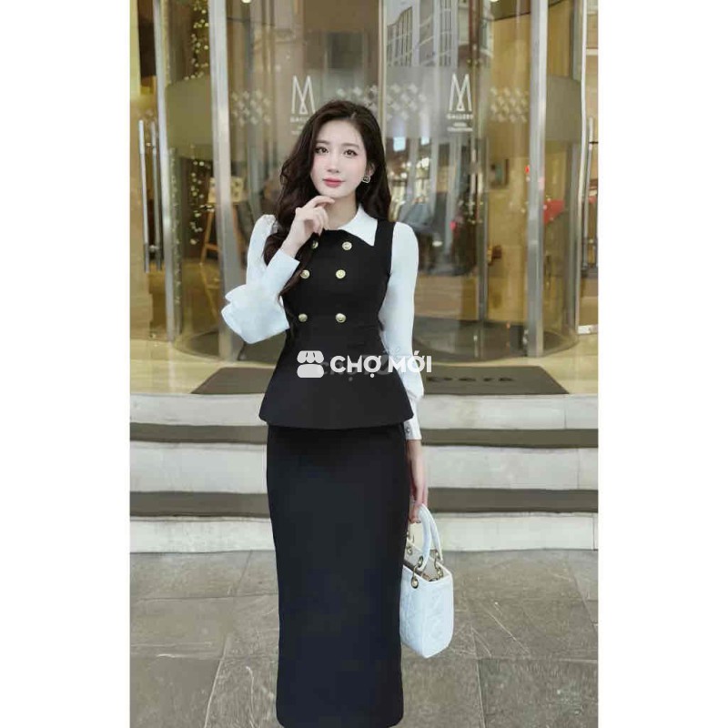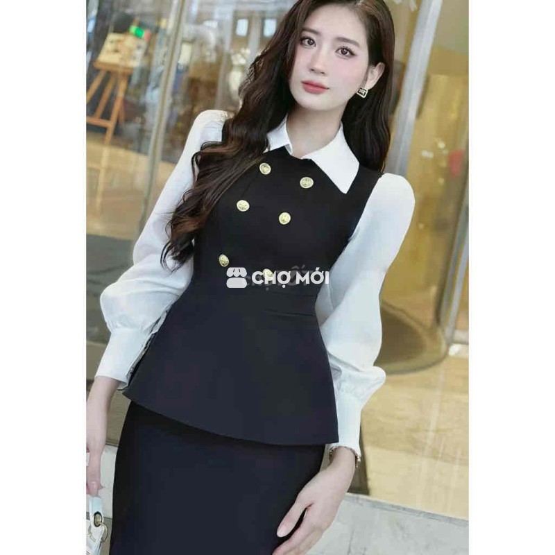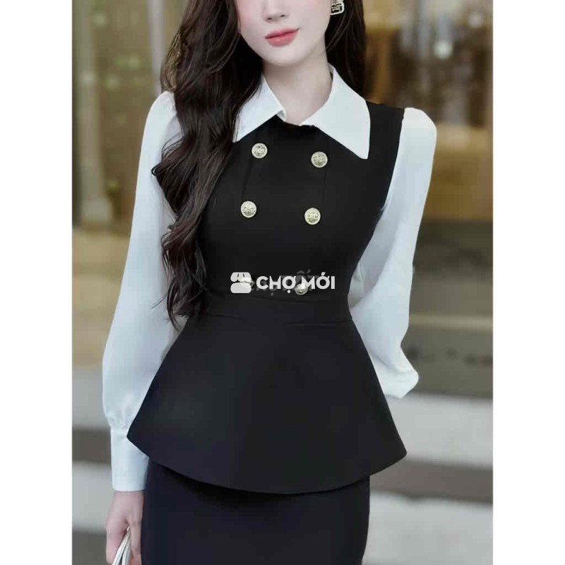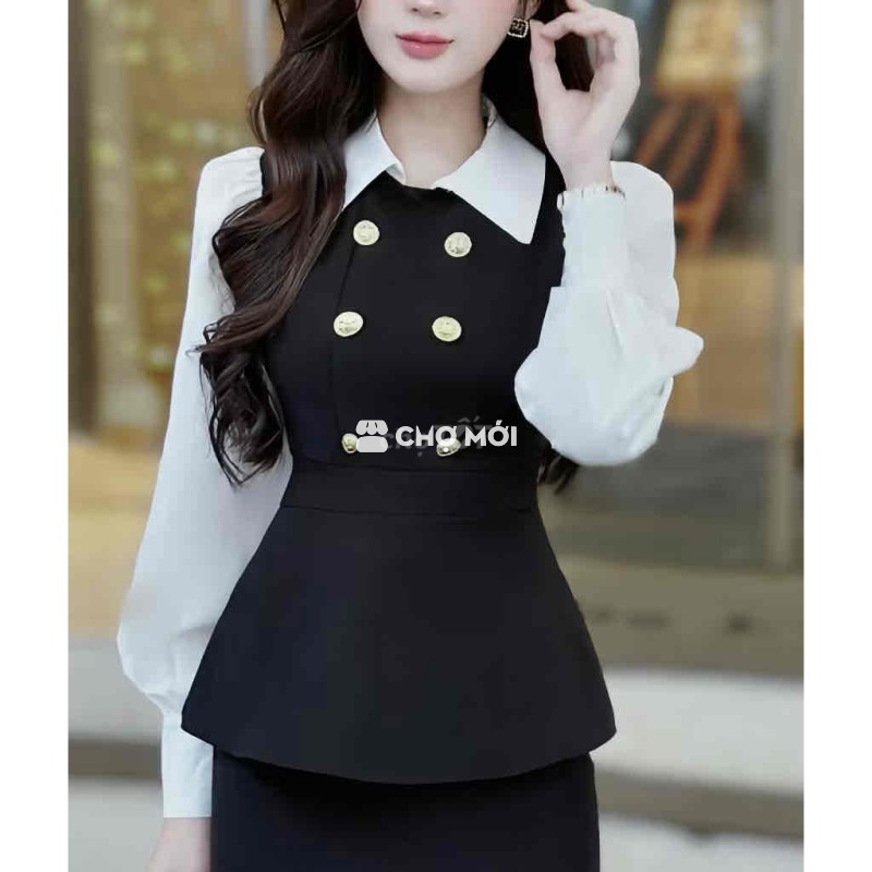 Áo Peplum thu đông Peplum đen trắng size L