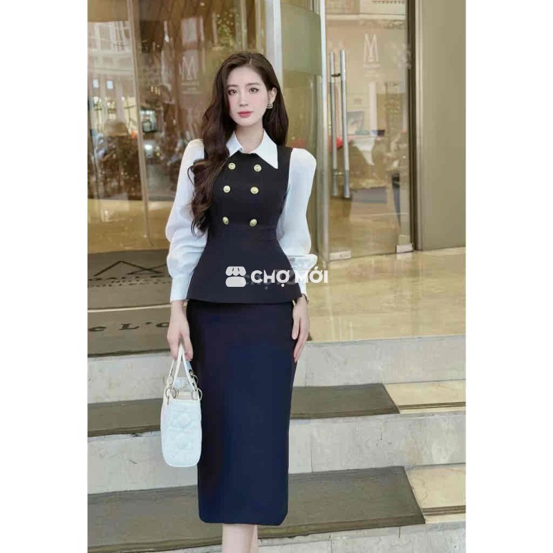 Đầm đen phối trắng lai bèo, xinh xỉu