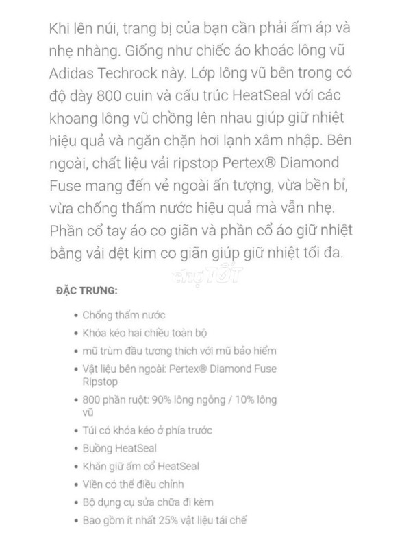 Áo phao lông vũ thương hiệu ADIDAS TERREX . Size M. Ngang ngực 57, dài 77. From slim. Cond 98%. Mới cắt tag, chưa sử dụng. Chấp nhận ship cod.