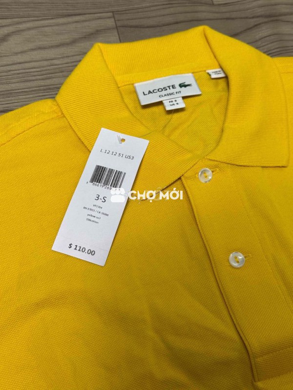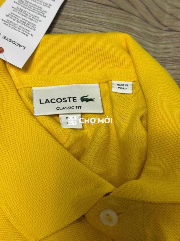 Áo polo Lacoste màu vàng, chất liệu 100% cotton mềm mại, thoáng mát. - Thiết kế Classic Fit, phù hợp cho cả nam và nữ. - Hàng chính hãng, sản xuất tại Peru. - Size S. - ngực 50 vai 42 dài 68