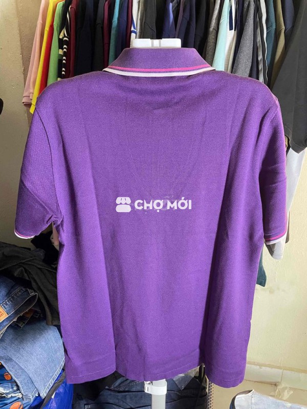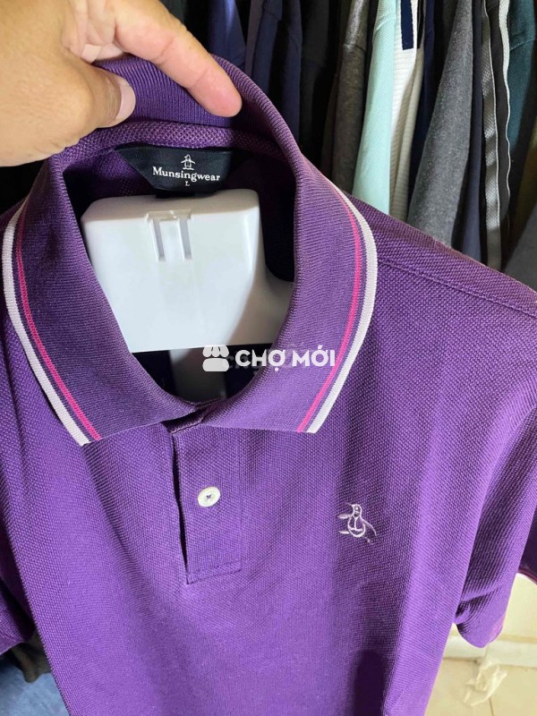 Áo Polo Munsingwear, màu tím, size L. Vải dệt kim, tay ngắn, kiểu dáng trơn. Phù hợp cho nam giới, mặc thoải mái.