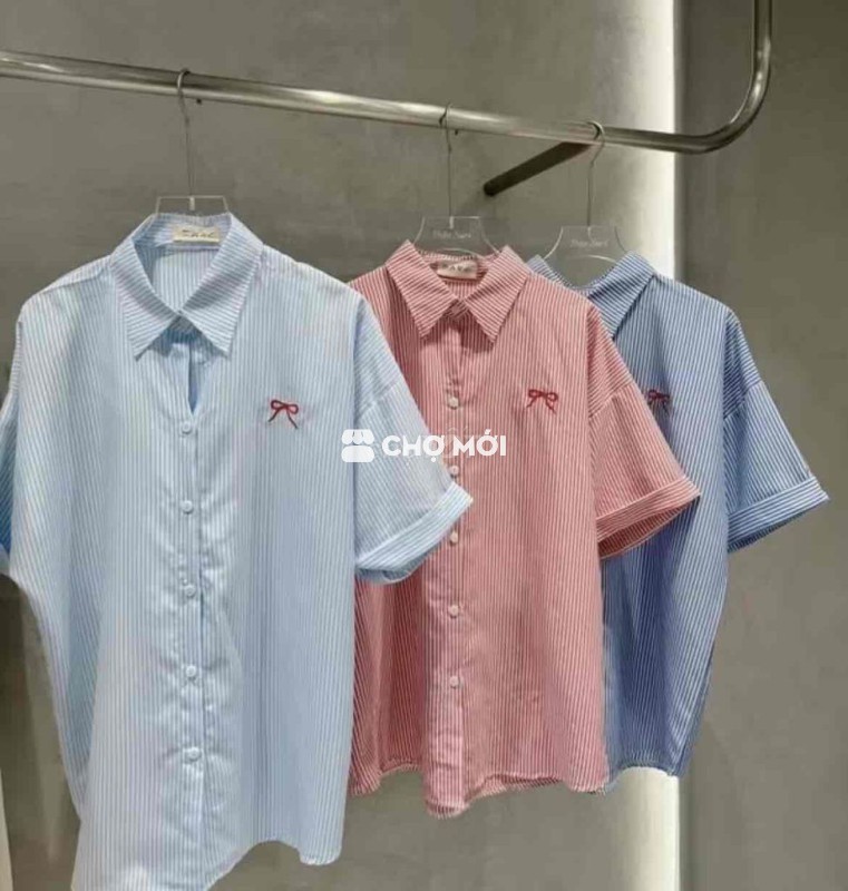 Áo sơ mi nữ Babee Form rộng tay ngắn Chất kate không nhăn Nơ thêu nổi