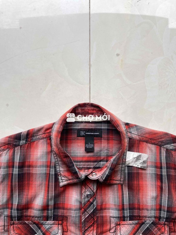 Áo sơ mi nam INC kẻ caro, chất liệu cotton thoáng mát.