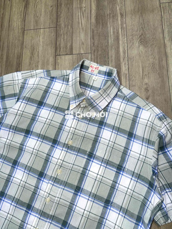 Áo sơ mi nam kẻ caro xanh xám, hàng Nhật Bản. - Áo mới cứng - Kích thước: vai 46, Vòng ngực 55cm, Dài áo 71cm. - Phù hợp với người 70-80kg. - Giá 170 nghìn.