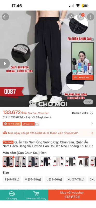 7/ Combo Sơ mi TM 724 đen, trắng Size XL : 57-63kg, dưới 1m78 Giá : 160k ( giá lẻ 95k/ cái) 8/ Sơ mi trắng 700 trắng Size XL : 57-63kg, dưới 1m7 Giá : 95k 9/ Combo 2 quần tây (đen, kem) Size XL : 62-68kg, dưới 1m75 Giá : 260k ( mua lẻ thì 150k/cái ) 10/ Quần tây đen cạp chun form suông Size XL : 67-73kg, dưới 1m75 Giá : 100k 11/ Sơ mi trắng phối nách DT : giá 120k Size L : 51-58kg, dưới 1m75