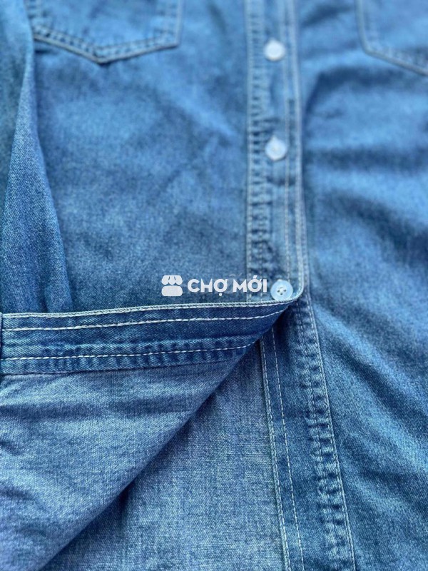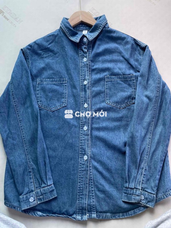 Áo sơ mi QIBAORUI vải bò xanh denim
