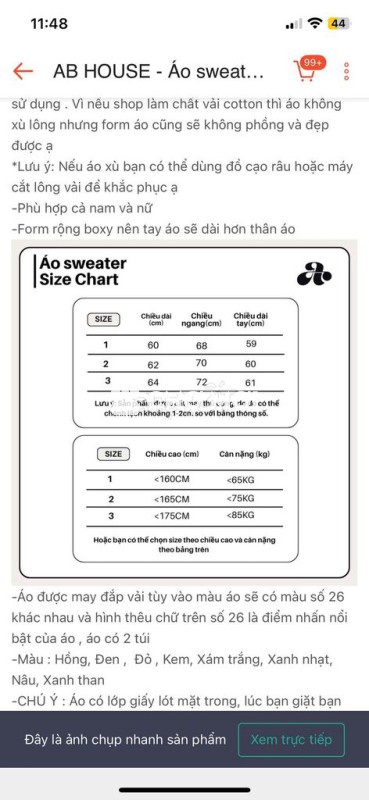 Áo sweater AB HOUSE cotton kem Size 1