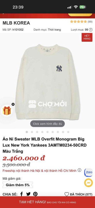 Áo sweater MLB bao chính hãng cho người >75kg mặc đẹp ạ. Áo em cất tủ hơi nhăn mng về là đi là đẹp ạ