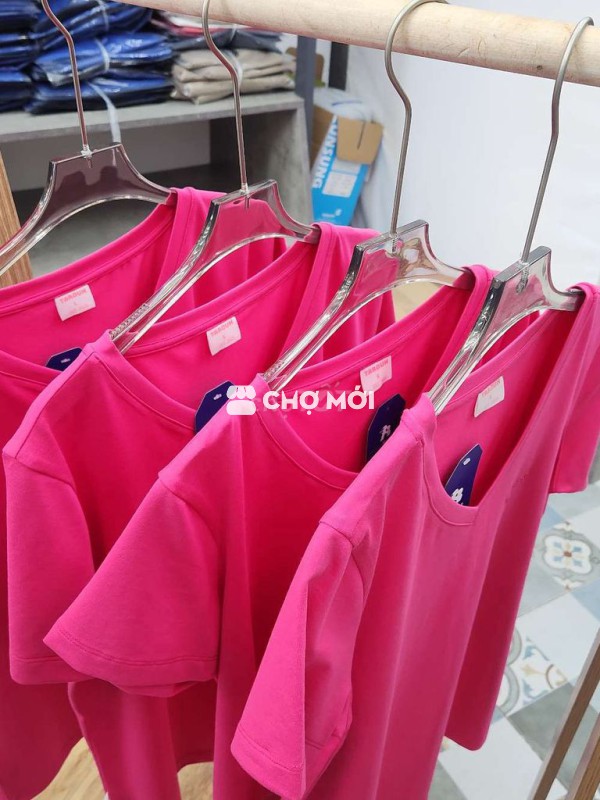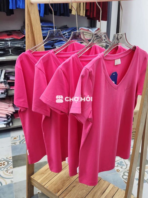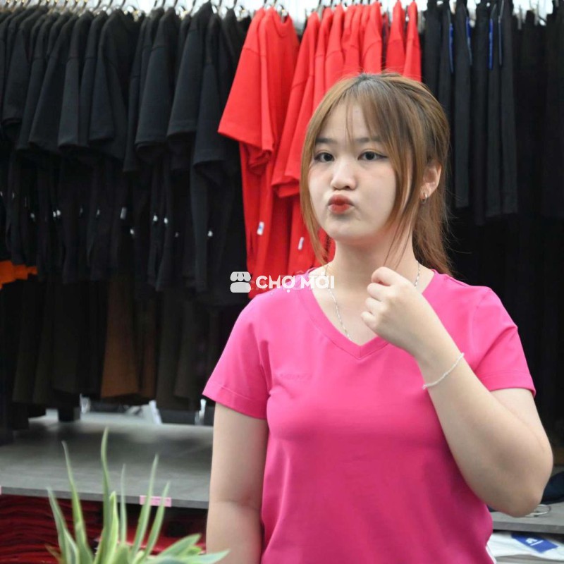 Áo thun nữ cổ tim cotton 100% màu hồng sen