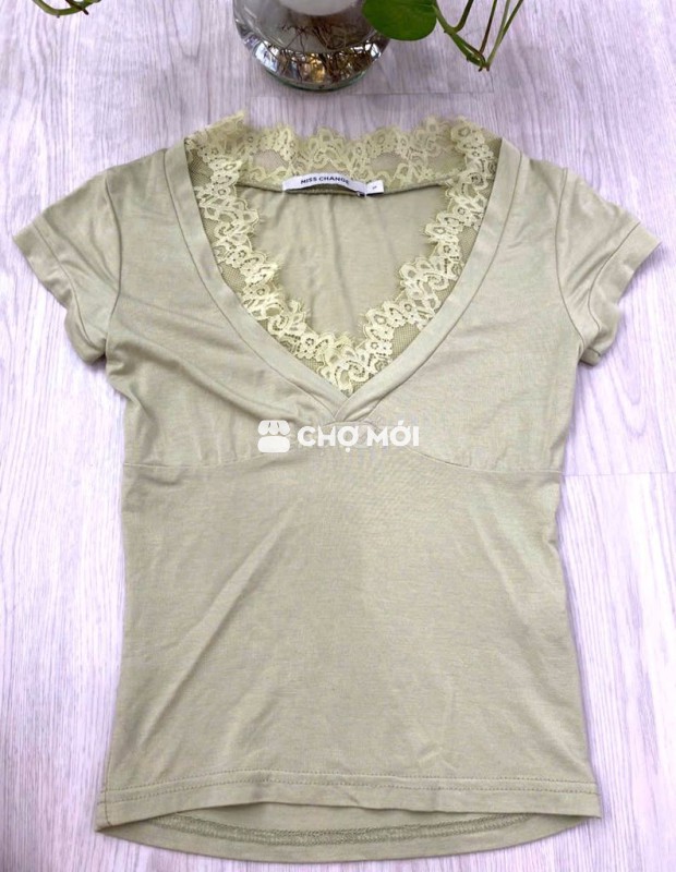 2. Màu lá úa tôn da, cổ chữ V có ren. Dài 43 cm.