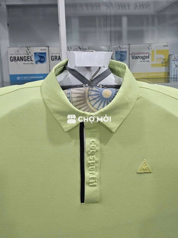 Áo thun Polo Leqcoq spotif gà trống pháp màu mạ non phối, khuy khóa dập hiệu hãng, logo lớn thêu toàn bộ quá đỉnh. Thương hiệu thời trang danh tiếng Paris, cây này chất vải mềm mại cao cấp mặc rất đẳng cấp nha anh em. Anh em dân chơi biết thương hiệu nổi tiếng này rồi không phải giới thiệu nhiều ạ. Cây này chụp hình bị bóng đèn chiếu sáng ở ngoài mới đẹp lắm nha anh em.