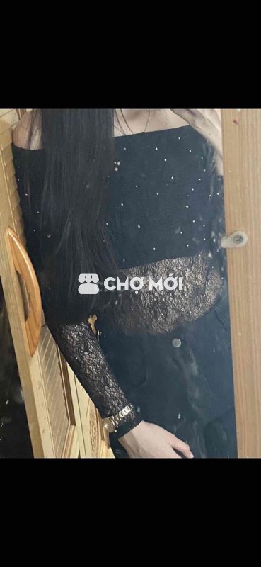 Áo trễ vai dài tay chất thun ren đính đá lấp lánh, size M. - Thiết kế trễ vai nữ tính, sang trọng. - Đã mặc 1 lần, còn mới. - PASS: 80k