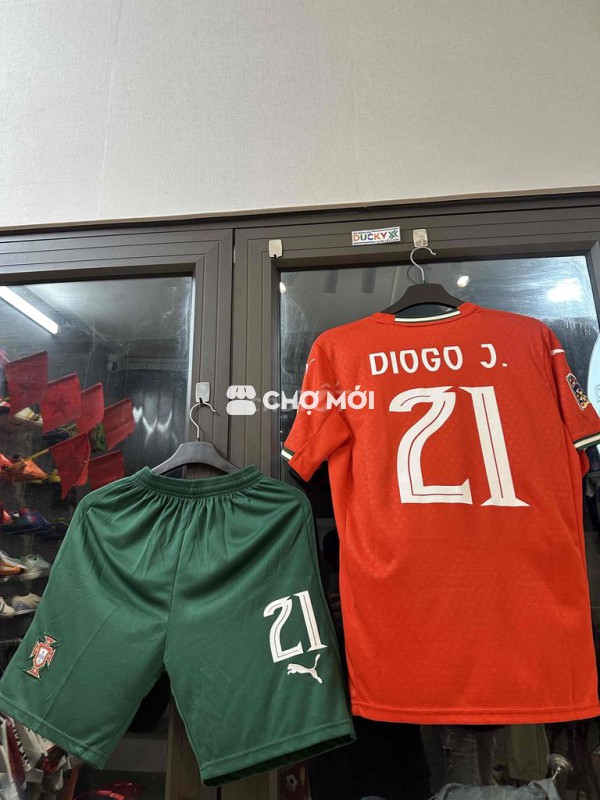 vải thái lan, mặc thời trang hoặc đi đá bóng đầy đủ logo, hoạ tiết áo in decal sẵn tên Jota tri ân có patch nation league
