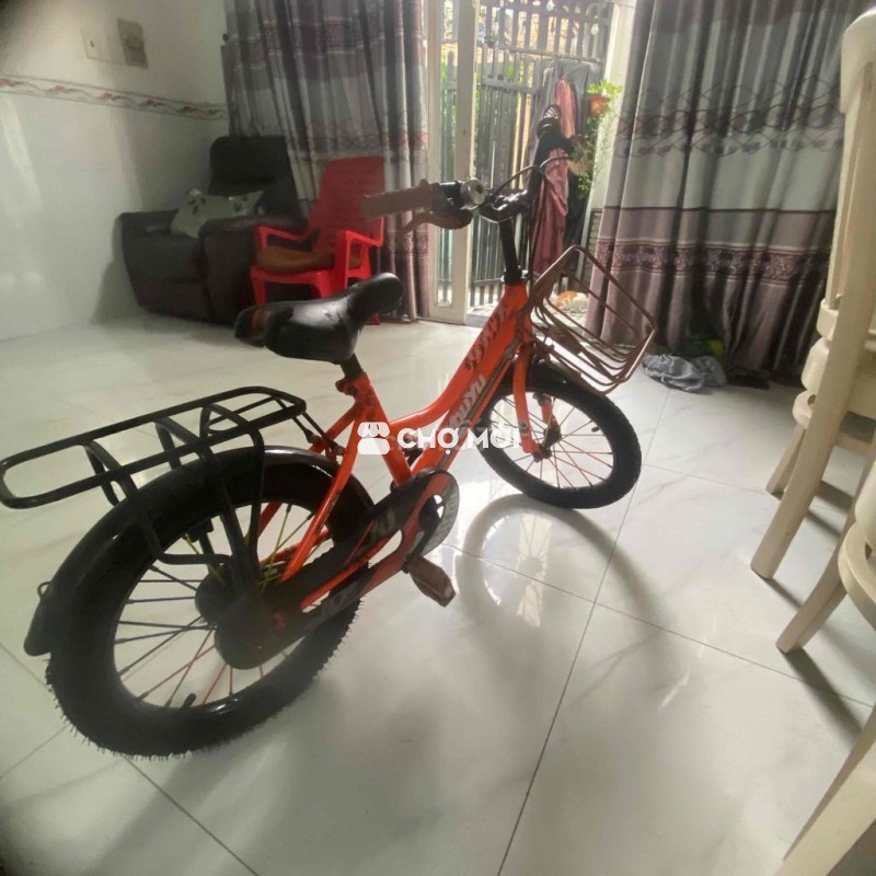 Bán xe đạp màu cam bánh 16 inch cho bé 3-7 tuổi đang sử dụng tốt giá 320k có bớt tiền xăng xe. Còn bánh phụ 2 bên