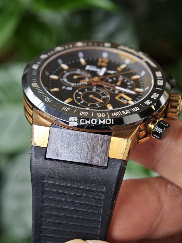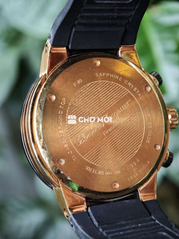 Salvatore Ferragamo F-80 Swiss Chronograph 44mm chính hãng,máy Quartz Thụy Sỹ,chống nước 100m,benzen gốm,viền titan,mặt sarphire,size 44mm.Hình thức như ảnh,có trầy nhẹ,dây cao su còn như mới,kg lỗi lầm.Giá web toàn loanh quanh 3 chục.
