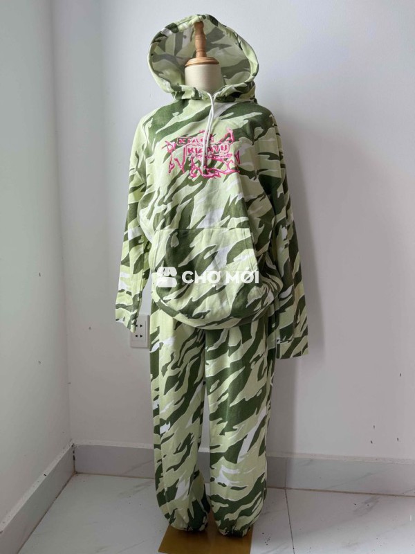 Bộ hoodie rằn ri xanh vải nỉ