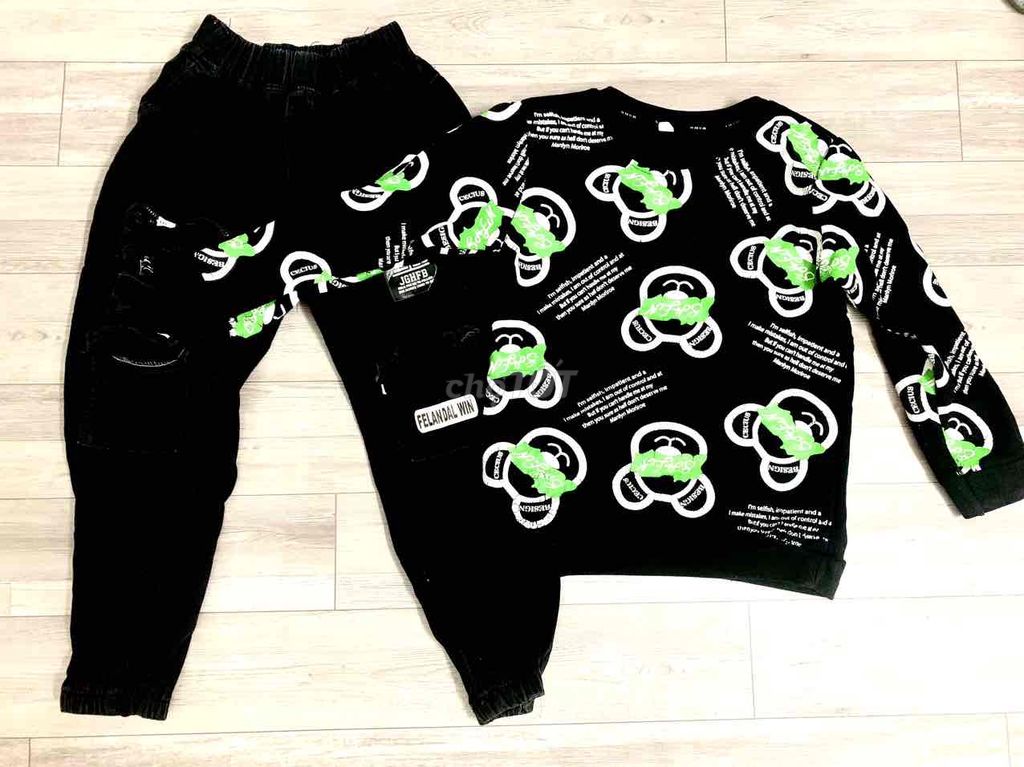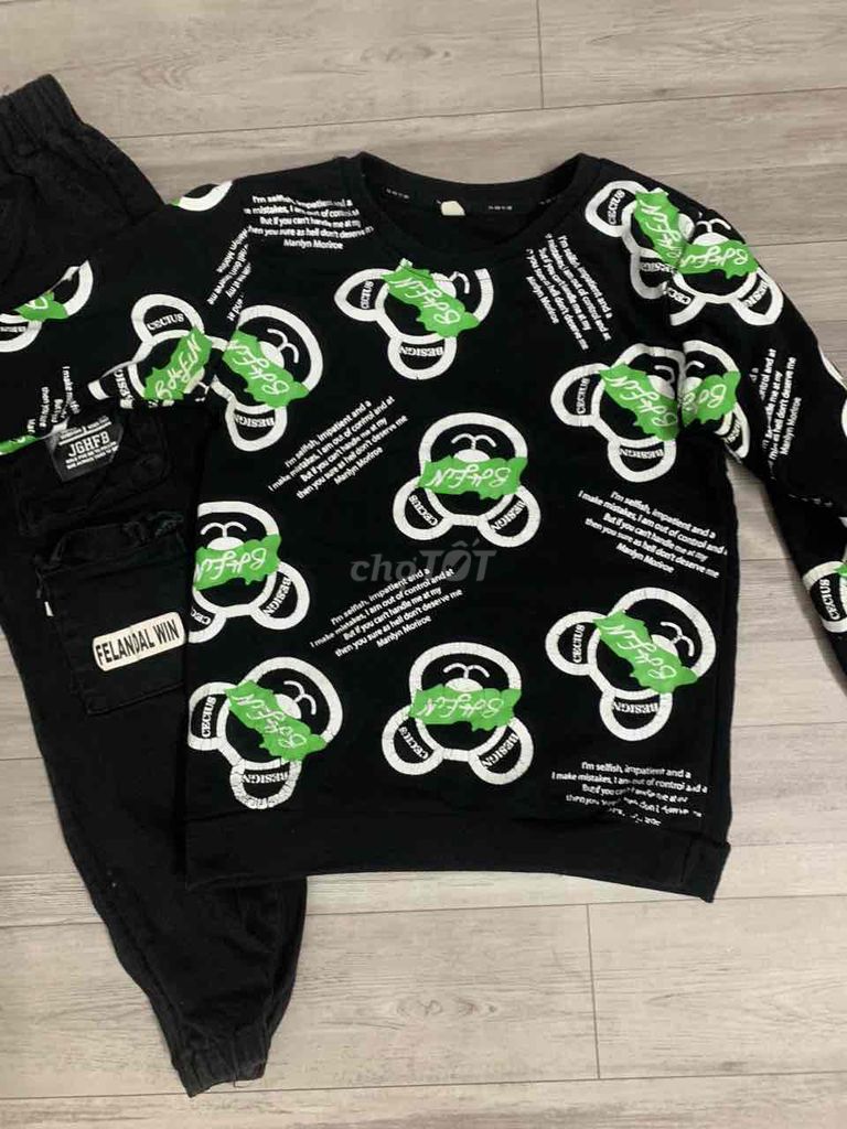 Pass bộ nỉ cho bé từ 30kg đổ lại.quần túi hộp áo chất nỉ co giãn.
