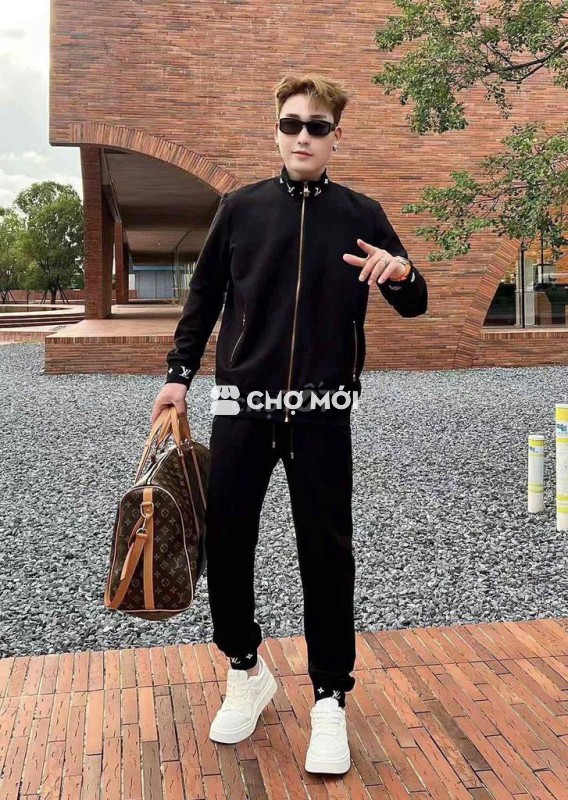 Bộ nỉ LV màu đen cho nam, thiết kế trẻ trung, năng động.