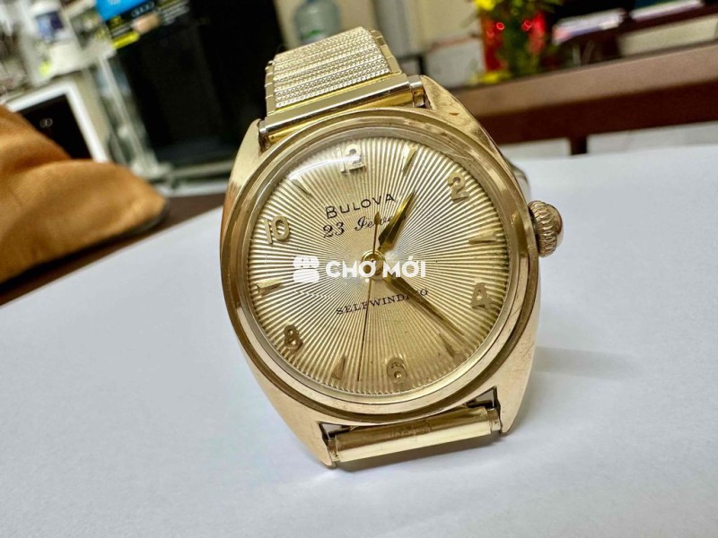 Size 34mm L4-1954, Mặt xòe quạt, Chải tia số học trò kèm dây chun USA Bọc vàng 18mm( đầu thụt thò ) Cơ automatic. Nước vàng đẹp Sưu tầm giá trị