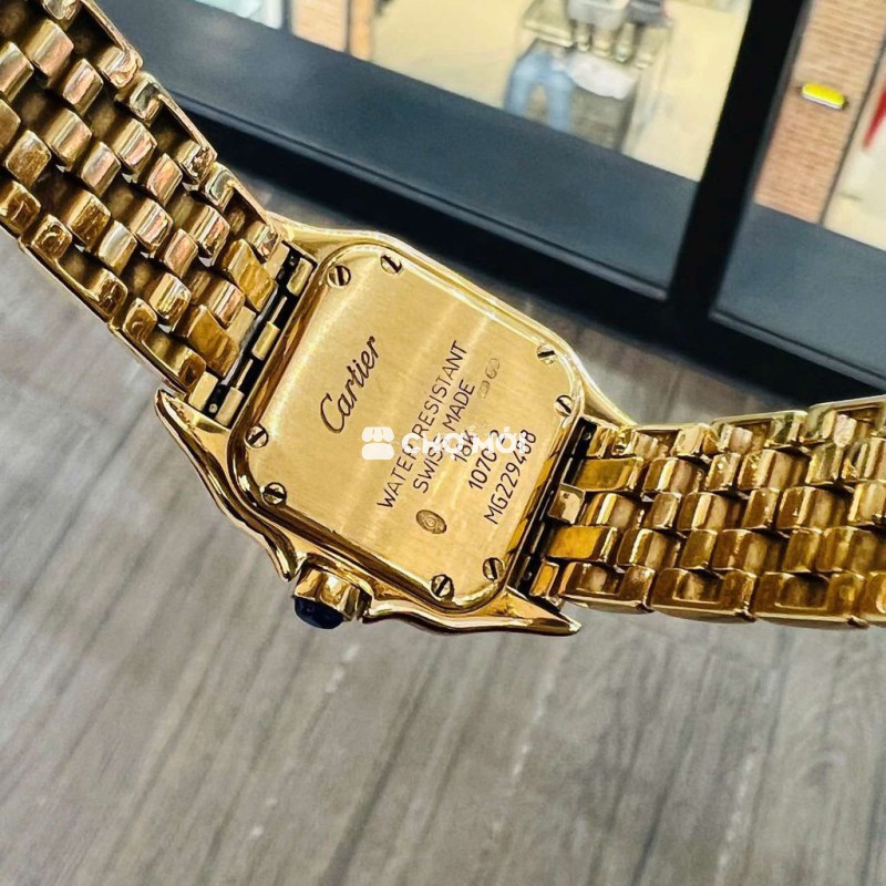 Cartier Panthère nữ size nhỏ, vỏ & dây nguyên khối 18K vàng, sang trọng – biểu tượng của sự tinh tế và đẳng cấp.