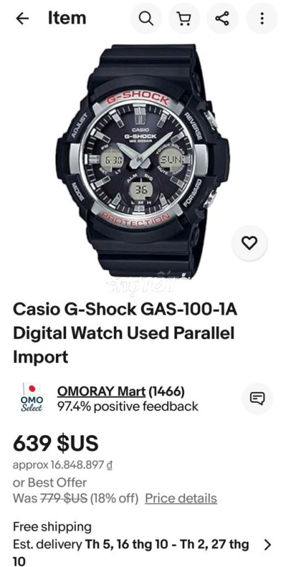 Casio G_Shock GAS_100 màu Balck cuốn quá luôn Siêu hiếm Tình trạng: like new hình thức đẹp như mới, full chức năng hoàn hảo