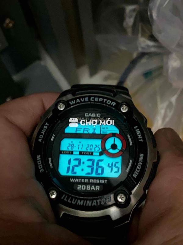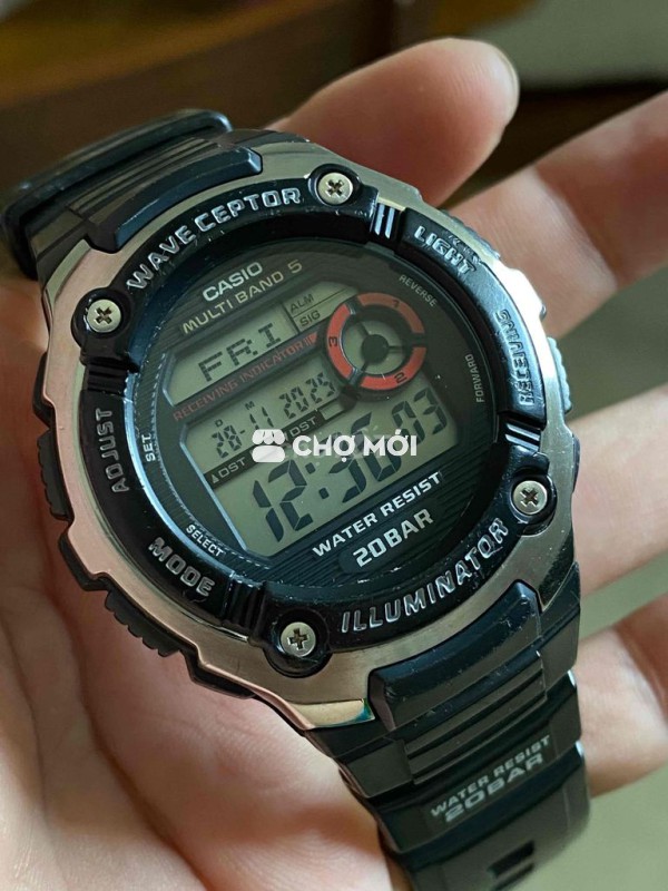 Casiô Wave Ceptor Vỏ nhựa ốp niền inox dây nhựa Mặt hiển thị số đtử to rõ,full chức năng,chuông to đèn sáng Form thể thao size 45-46 Cơ chế pin Tổng thể 90% all zin Xchăm tỉu học ***