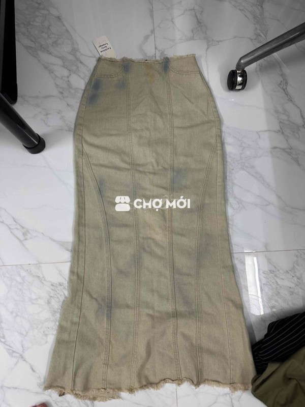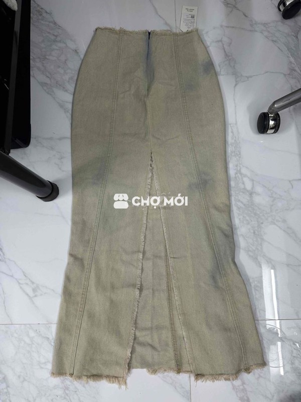 chân váy jeans dài xẻ xanh nhạt