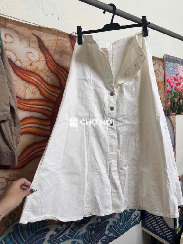 Chân váy UNIQLO màu trắng, chất liệu cotton mềm mại, thoáng mát. - Thiết kế đơn giản, dễ phối đồ. - Vòng eo 67cm, vòng hông 94cm. - Phù hợp cho nhiều dịp khác nhau.