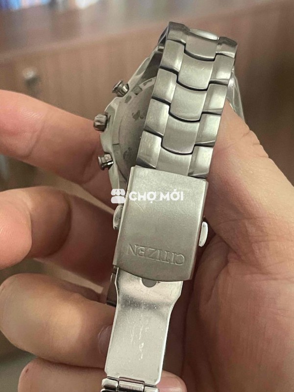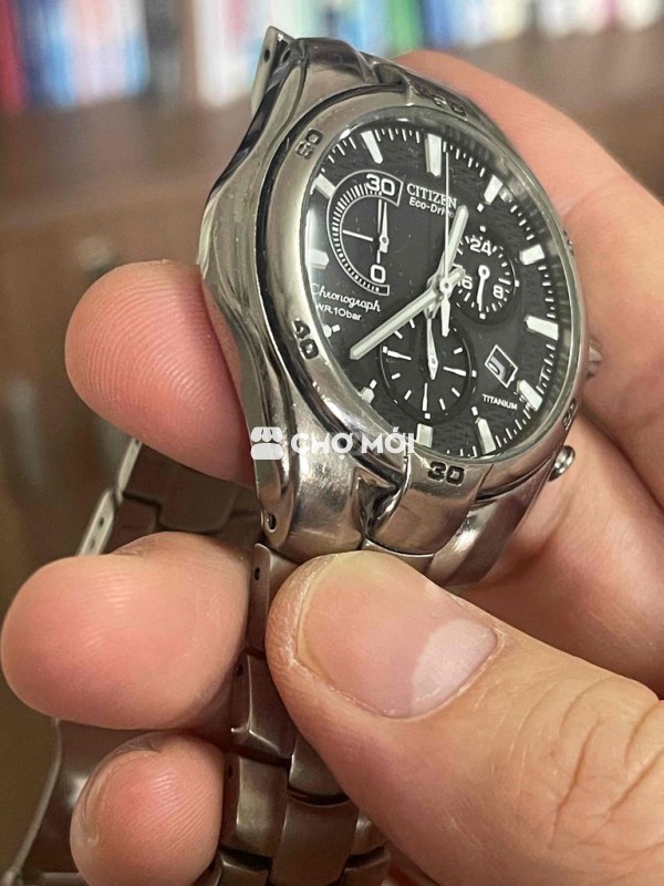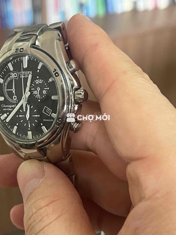 Đồng hồ Citizen Eco-Drive Chronograph nam, size mặt 40mm chất liệu Titanium nguyên con, thân vỏ đẹp, kim cọc đẹp dây còn 17cm, chống nước kém, pin trữ điện tốt, zin nguyên con ạ - con này e bán bao máy không bao nước ạ. Máy e bảo hành 3 tháng
